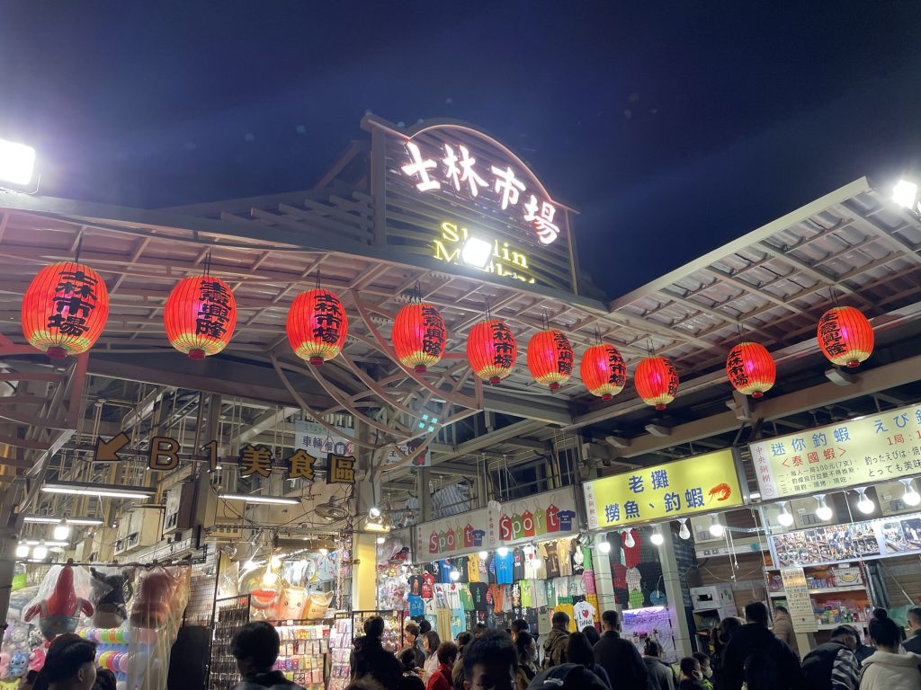 お寺も見終わり、小腹が空いたな〜ということで、士林夜市へ!